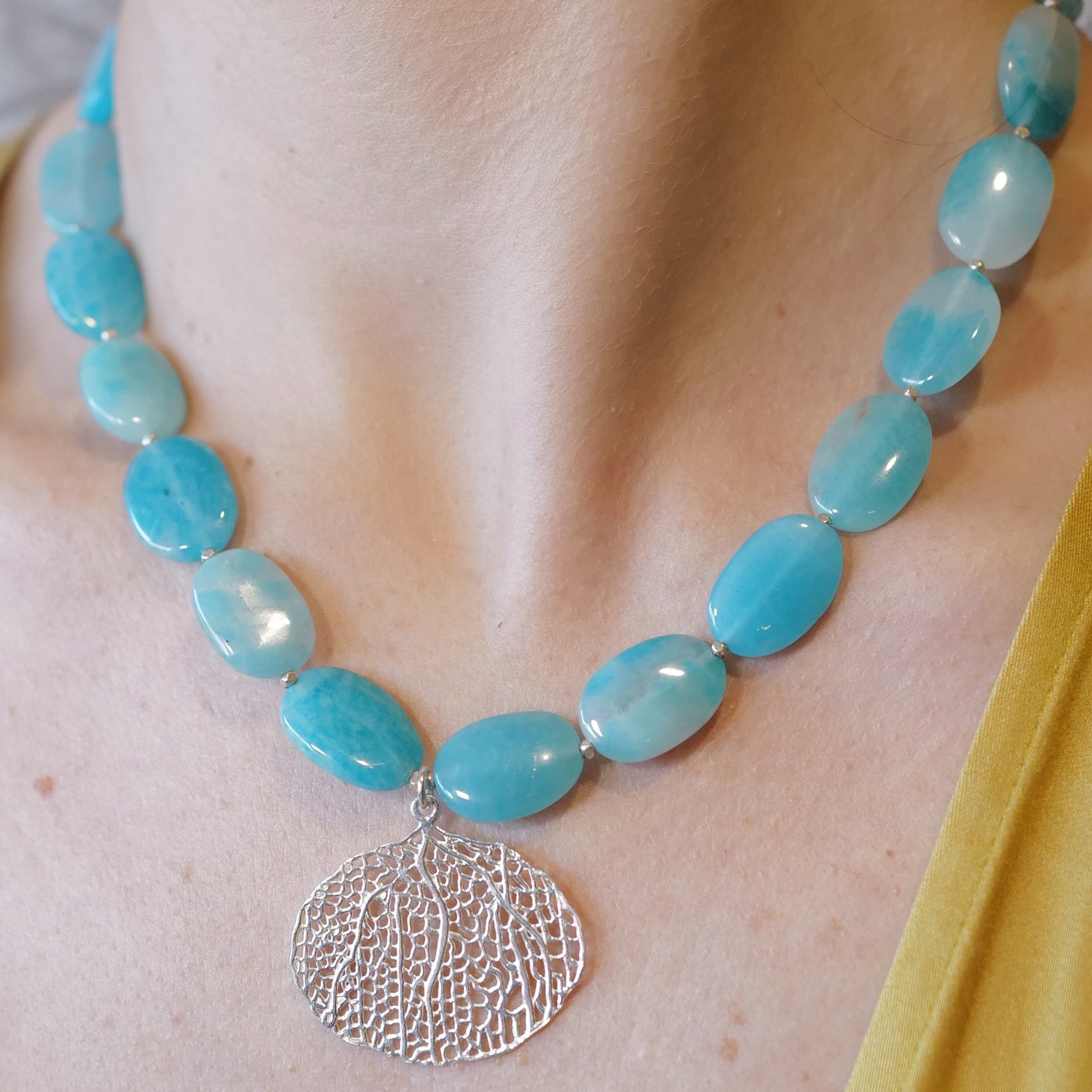 My Archetype Amazonite & Fine Silver Necklace with Coral Pendant- One-of-a-Kind