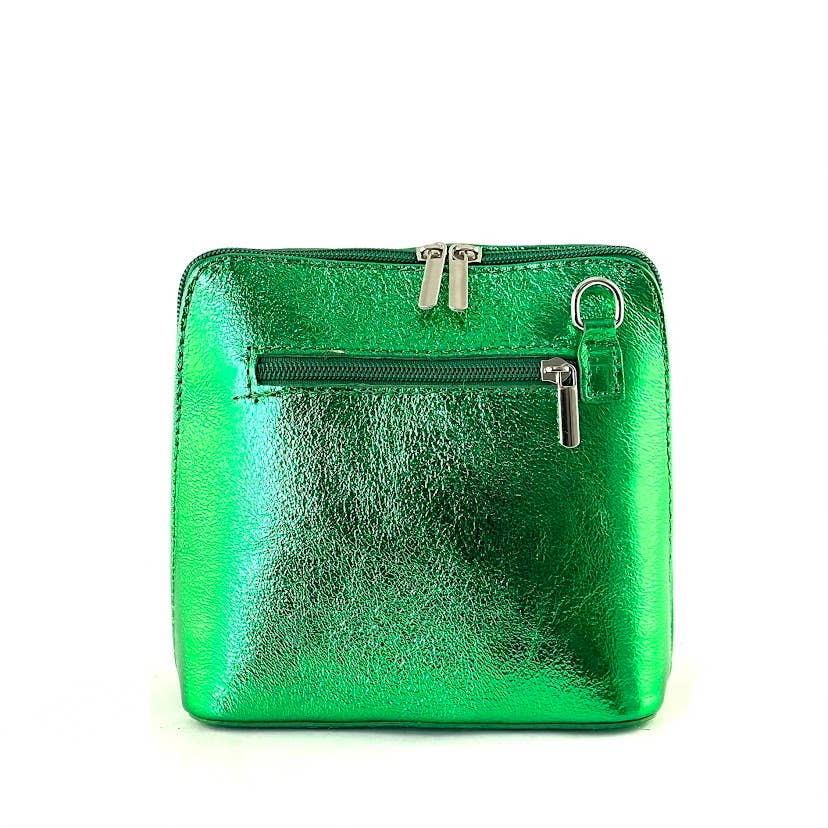 ITALIAN LEATHER TOTE BAG-METALLIC GREEN