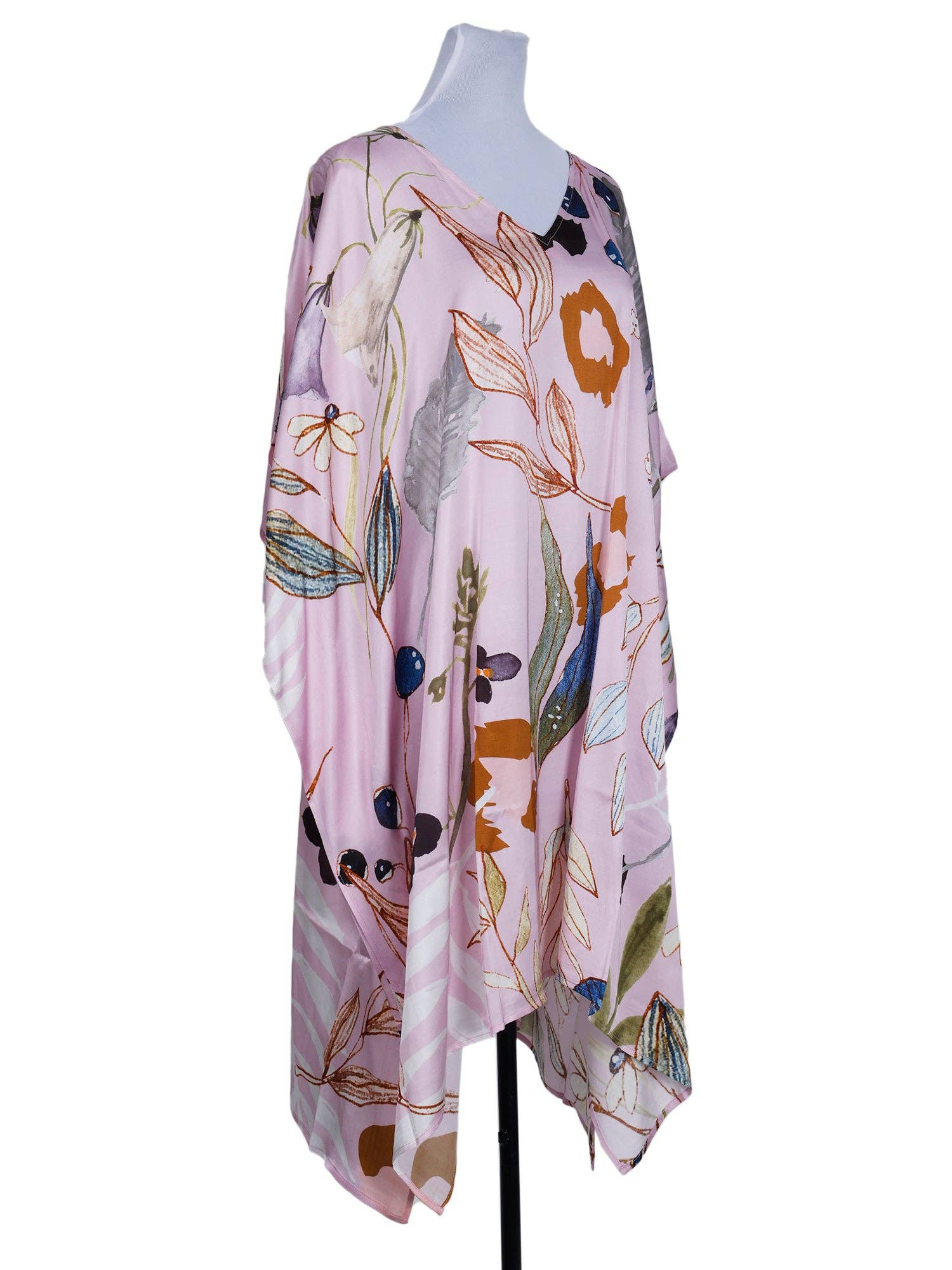 Embrace effortless elegance with our Floral Print Silk Kaftan, a timeless piece that transcends seasons and occasions. Crafted from luxurious silk, this flowing silhouette drapes beautifully against the body, offering both comfort and sophistication. The enchanting floral print adds a touch of botanical romance, making it perfect for leisurely afternoons, resort getaways, or intimate gatherings. The generous cut allows for graceful movement while maintaining an air of refined simplicity. Layer it over swimwear for a chic beach look, or wear it solo as a statement piece. This versatile kaftan celebrates the art of understated luxury, proving that true style lies in the marriage of quality fabric, thoughtful design, and timeless appeal.