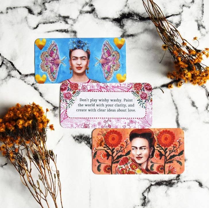 These beautifully illustrated cards serve as reminders to use your artistic voice with courage and purpose, like Frida Kahlo did. These come in a small magnetic closure box. Perfect to keep in your bag, on your desk, or in your nightstand for daily inspiration.