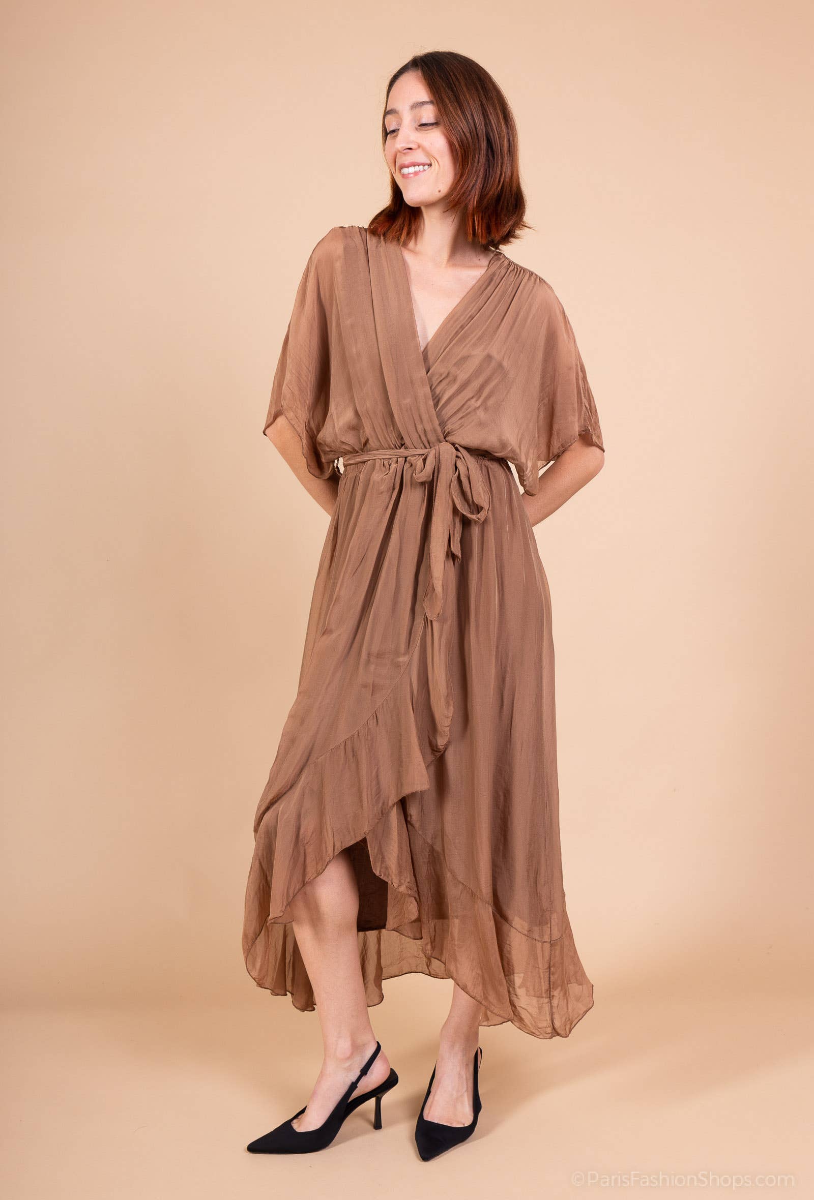 Silk dress: 30% Silk 70% viscose / Camel / Size S to M