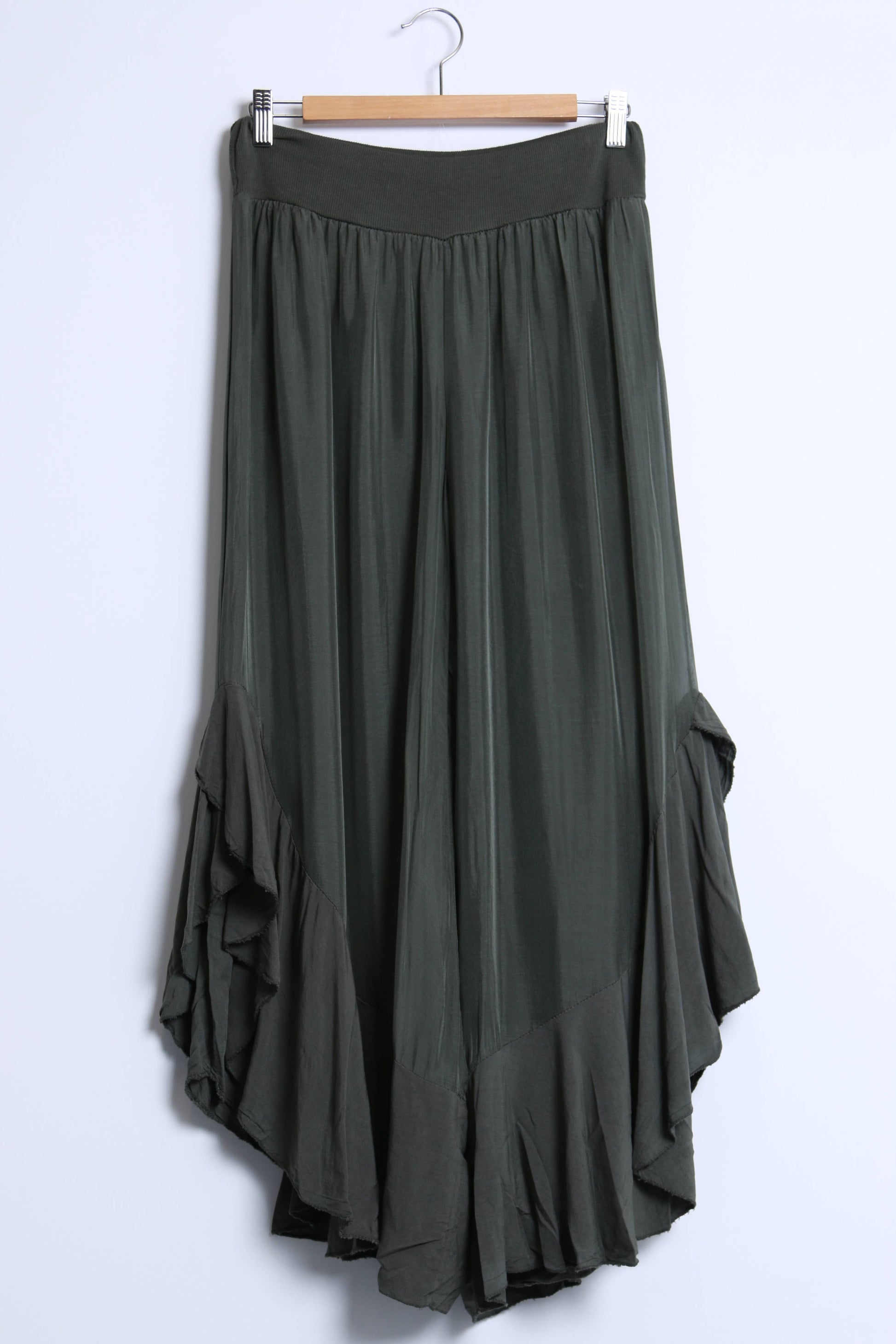 These silk pants exemplify precision tailoring through their bias-cut construction, a technique that maximizes fabric fluidity and creates superior drape. The khaki hue provides a neutral foundation that pairs effortlessly with layered styling. Crafted from pure silk, the fabric offers natural breathability and a refined aesthetic that improves with wear. The bias cutting at the hem is a hallmark of advanced garment construction, allowing the pants to move organically while maintaining their shape. An investment piece for discerning individuals who understand the value of quality materials and expert craftsmanship.
